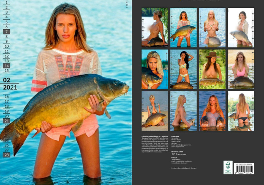 Огроменной выловленной рыбой в данном календаре и пытаются похвастаться перед любителями рыбалки модели. Девушки, по-видимому, боялись намочить одежду, а потому некоторые из них и вовсе отказались от нее на время съёмок. Карпом же прикрываются все самые пикантные открытые места.